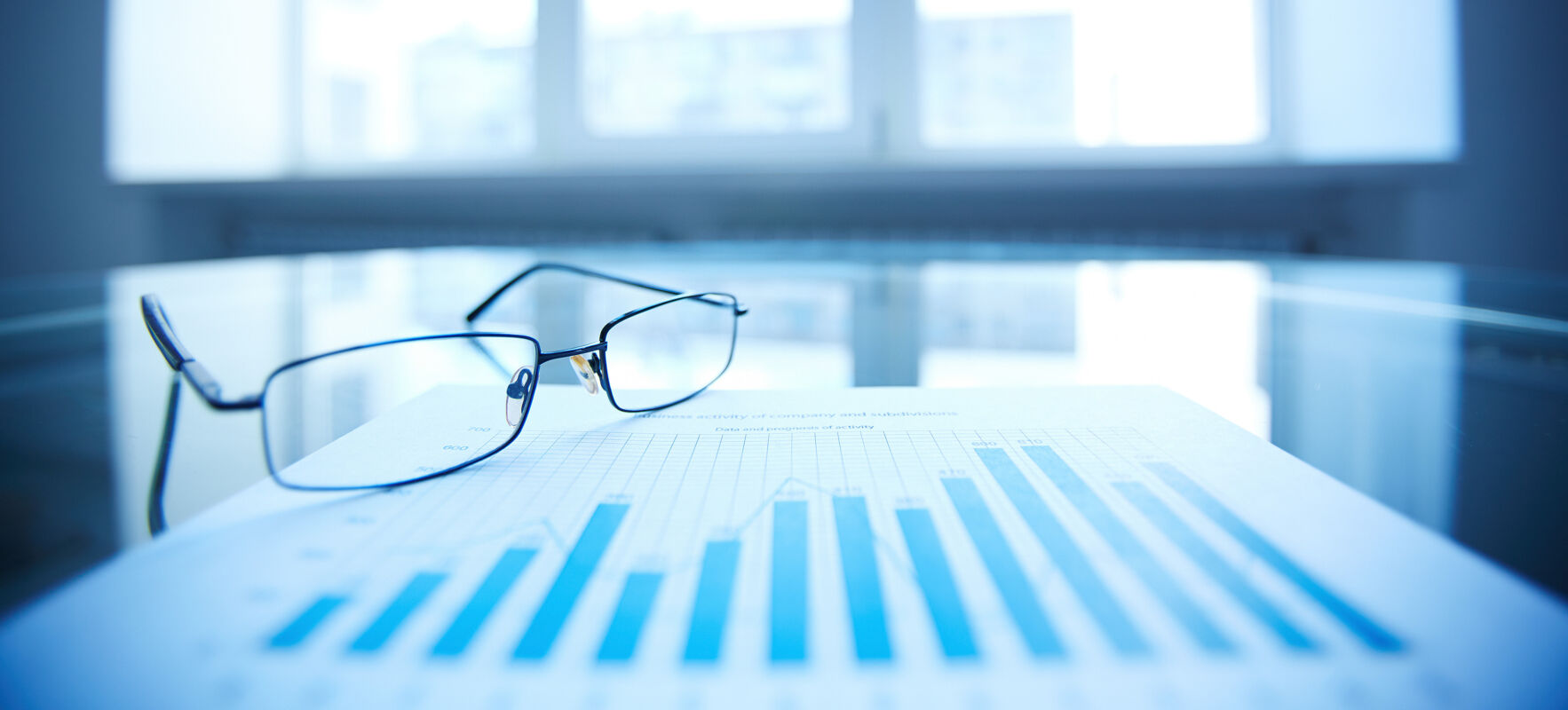 Image of eyeglasses and document on workplace